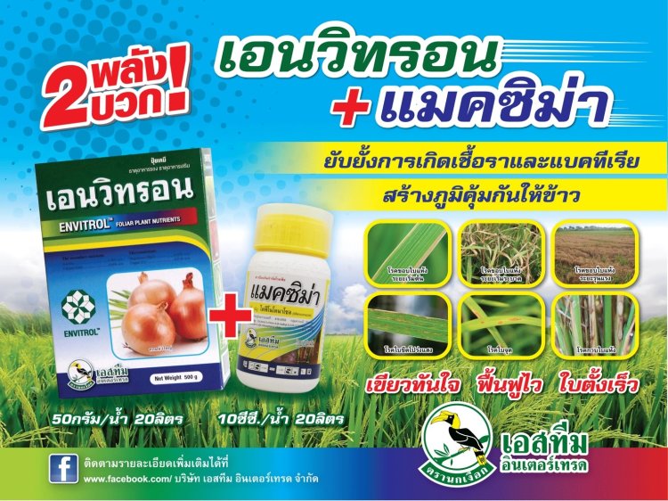เอสโตบิ้น : อะซอกซีสโตรบิน 25% W/V SC + แมคซิม่า : ไดฟีโนโคนาโซล 25% W/V EC